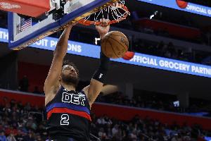 据此前ESPN名记Shams Charania报道,消息人士透露,活塞球星坎宁安被诊断出患有气胸,预计将缺席很长一段时间。坎宁安本赛季代表活塞出战61场比赛,场均可以得到24.5分2.6板9.9助。活塞目前49胜19负高居东部第一。