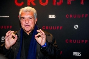 体育资讯3月22日讯 据《每日体育报》报道,成功实现连任的巴萨主席拉波尔塔出席了俱乐部传奇克鲁伊夫纪录片的首映礼。