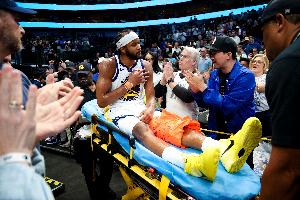 可惜,穆迪的绽放没有持续太久。3月24日勇士加时险胜独行侠一战,穆迪因手腕伤势休战21天后复出。在遭遇髌腱撕裂重伤前,穆迪已经拿到23分、3篮板、3助攻、3抢断、2盖帽。突然,膝盖髌腱撕裂带来的剧痛强行将穆迪从云端拽落到地面。