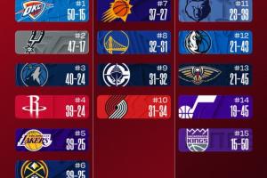 湖人主场110-97轻取尼克斯取得2连胜,战绩追平掘金,凭借太平洋赛区冠军优势暂时位居西部第五;掘金落至第六。