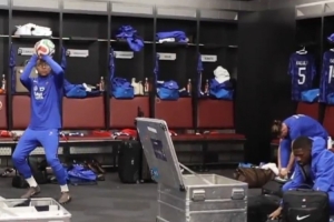 体育资讯3月31日讯 今日,法国足球国家队官方发布了一个皇马球星姆巴佩在更衣室里“投篮”的视频。
